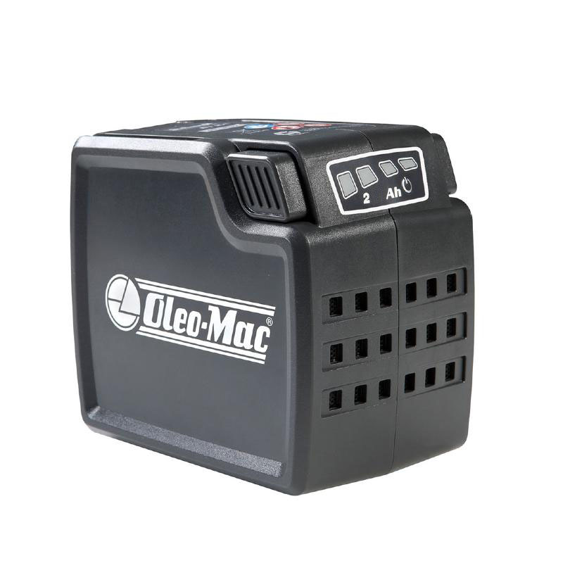 Η γκάμα των μπαταριών Oleo-Mac περιλαμβάνει δύο διαβαθμίσεις ισχύος: 2 και 5 Ah, οι οποίες και οι δύο έχουν τις ίδιες διαστάσεις και είναι τελείως εναλλάξιμες σε όλες τις εφαρμογές. Είναι εφοδιασμένες με σύστημα ένδειξης για αποκοπή υπερφόρτωσης και φόρτισης μπαταρίας.Όταν το εργαλείο είναι σε χρήση τα LED δείχνουν συνέχεια την κατάσταση της φόρτισης των μπαταριών.