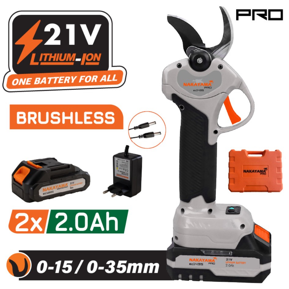Ηλεκτρικό Ψαλίδι Κλαδέματος Μπαταρίας  NAKAYAMA EC1435 Με 2 Μπαταρίες 2Ah