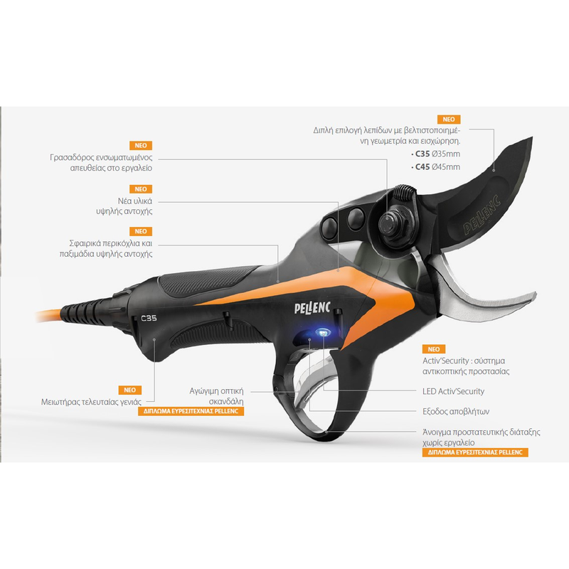 Το ηλεκτρονικό ψαλίδι κλαδέματος Pellenc C35 έρχεται με νέα κεφαλή κοπής με ικανότητα κλαδέματος 45 mm.