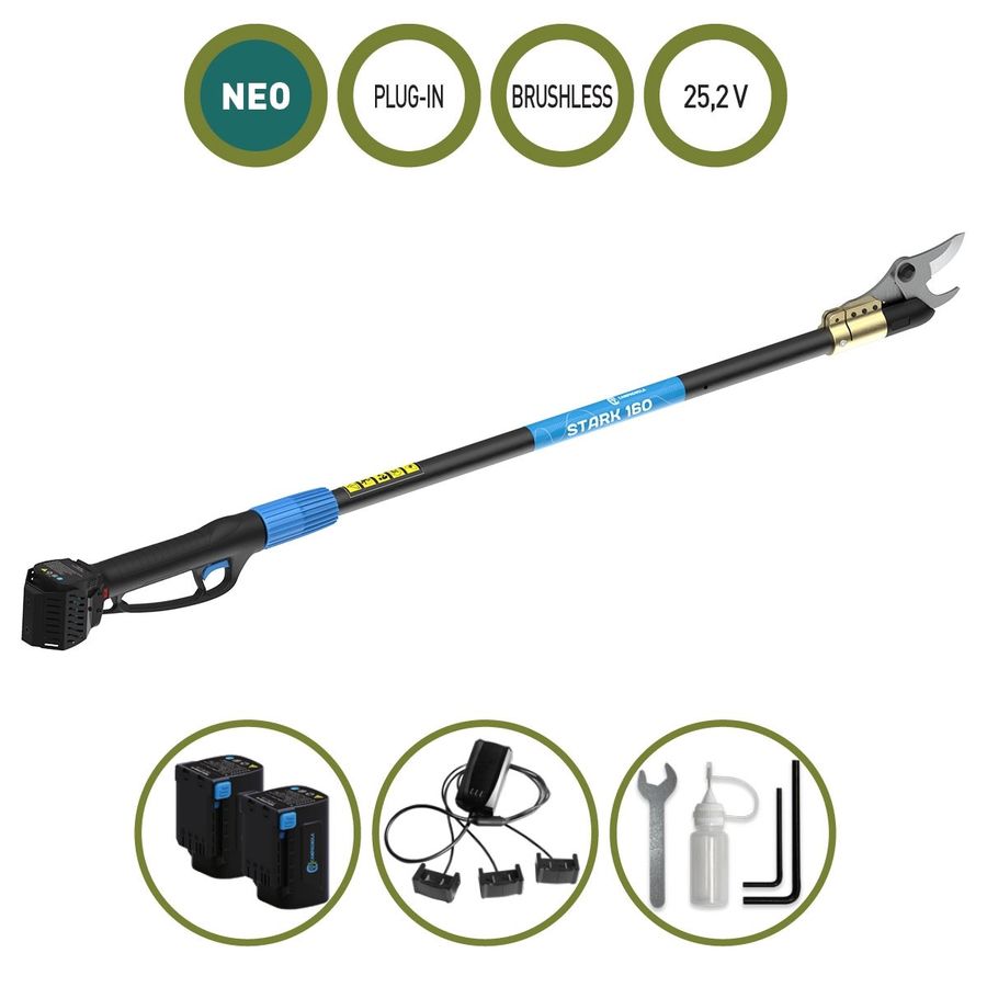 Ελαφρύ και πολύ εύχρηστο, το κονταροψάλιδο της σειράς Stark με μπαταρία Li-Ion έχει δυνατότητα κοπής διαμέτρου έως 38mm (αναλόγως της σκληρότητας του ξύλου)