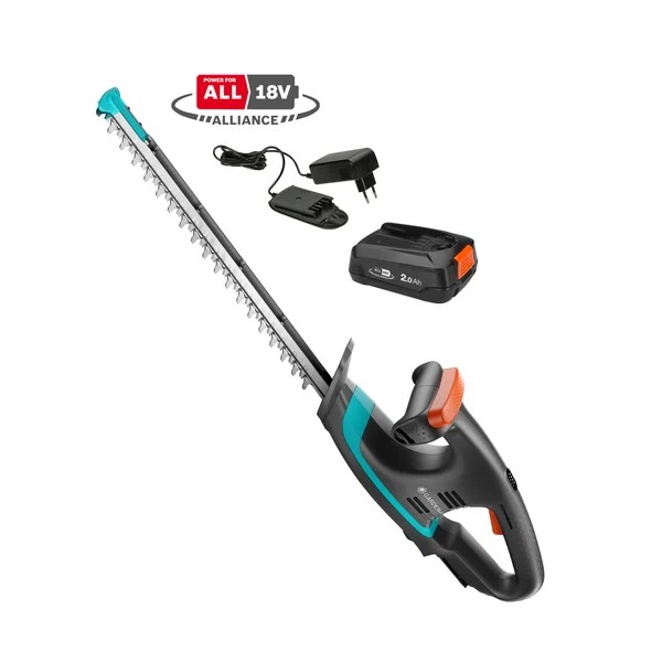 Το Μπορντουροψάλιδο Μπαταρίας EasyCut 40/18V P4A της GARDENA παρέχεται ως έτοιμο για χρήση σετ μαζί με φορτιστή και μπαταρία 18V POWER FOR ALL που φορτίζεται γρήγορα.
