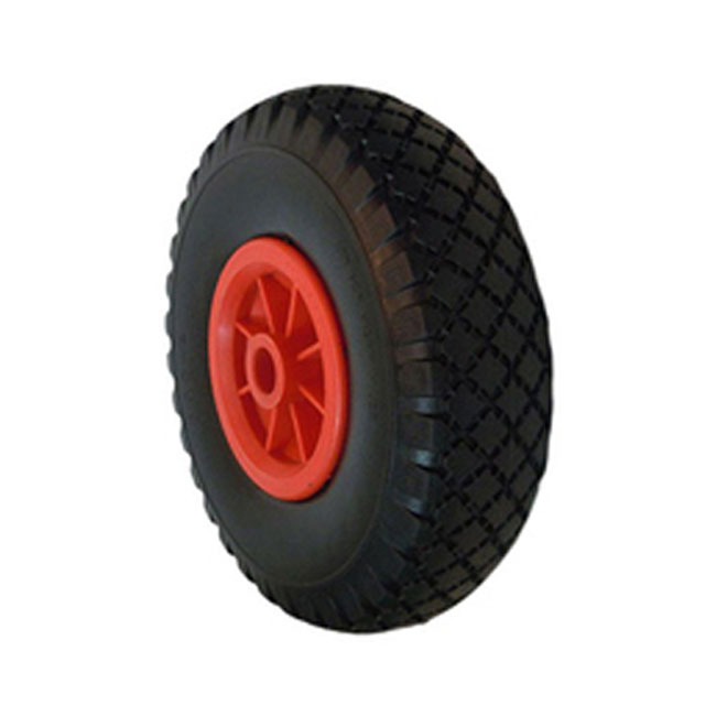 Ρόδα 300Χ4 συμπαγής με πλαστική ζάντα, κατάλληλη για τα περισσότερες βάσεις ψεκαστικού και ελαιοραβδιστικού.