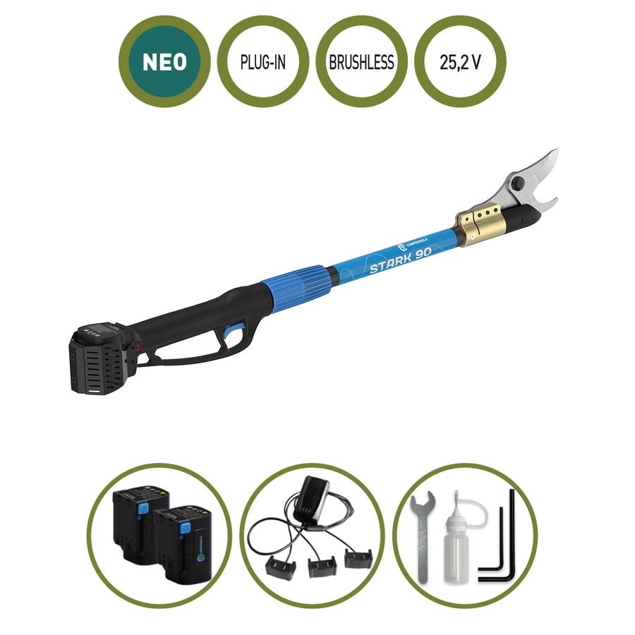 Ελαφρύ και πολύ εύχρηστο, το κονταροψάλιδο της σειράς Stark με μπαταρία Li-Ion έχει δυνατότητα κοπής διαμέτρου έως 38mm (αναλόγως της σκληρότητας του ξύλου)