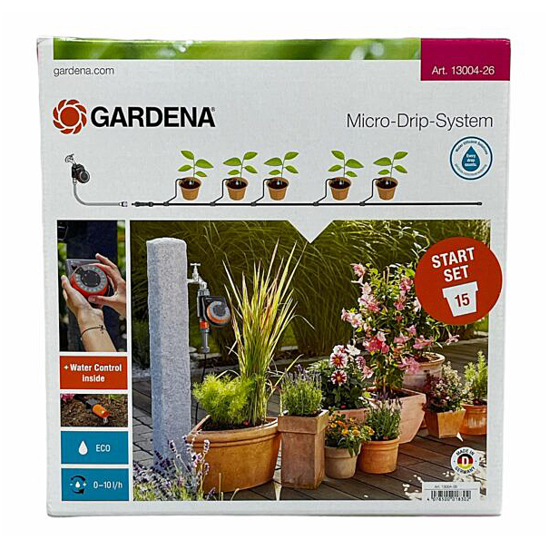 Το σετ ποτίσματος Micro-Drip με προγραμματιστή GARDENA περιλαμβάνει όλα τα εξαρτήματα που χρειάζεστε για ξένοιαστο πότισμα σε έως 15 γλάστρες κάνοντας ταυτόχρονα οικονομία νερού.